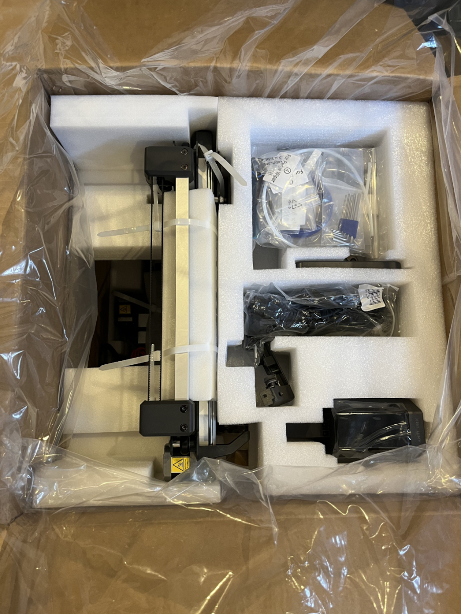 Beide Geräte, der Drucker und der ACE Pro, kommen in einem großen Karton. Alles ist super verpackt. Da kann der Lieferdienst auch würfeln… Ebenfalls ist alles vor Feuchtigkeit geschützt, falls der Fahrer das Paket mal wieder unter den Briefkasten stellt… Kennt man ja… Der Nachteil ist natürlich: Viel Plastikmüll. Aber um fair zu bleiben muss man dazu auch sagen: Wer 3D druckt, erzeugt eh einen recht großen Haufen Plastikmüll – durch die Spulen, Fehldrucke, Filamentreste usw… Trotzdem bin ich mir ziemlich sicher, dass Anycubic hier noch etwas besser werden könnte.