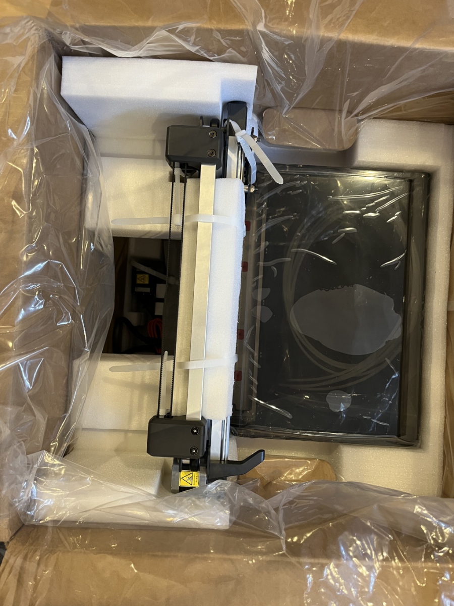 Beide Geräte, der Drucker und der ACE Pro, kommen in einem großen Karton. Alles ist super verpackt. Da kann der Lieferdienst auch würfeln… Ebenfalls ist alles vor Feuchtigkeit geschützt, falls der Fahrer das Paket mal wieder unter den Briefkasten stellt… Kennt man ja… Der Nachteil ist natürlich: Viel Plastikmüll. Aber um fair zu bleiben muss man dazu auch sagen: Wer 3D druckt, erzeugt eh einen recht großen Haufen Plastikmüll – durch die Spulen, Fehldrucke, Filamentreste usw… Trotzdem bin ich mir ziemlich sicher, dass Anycubic hier noch etwas besser werden könnte.