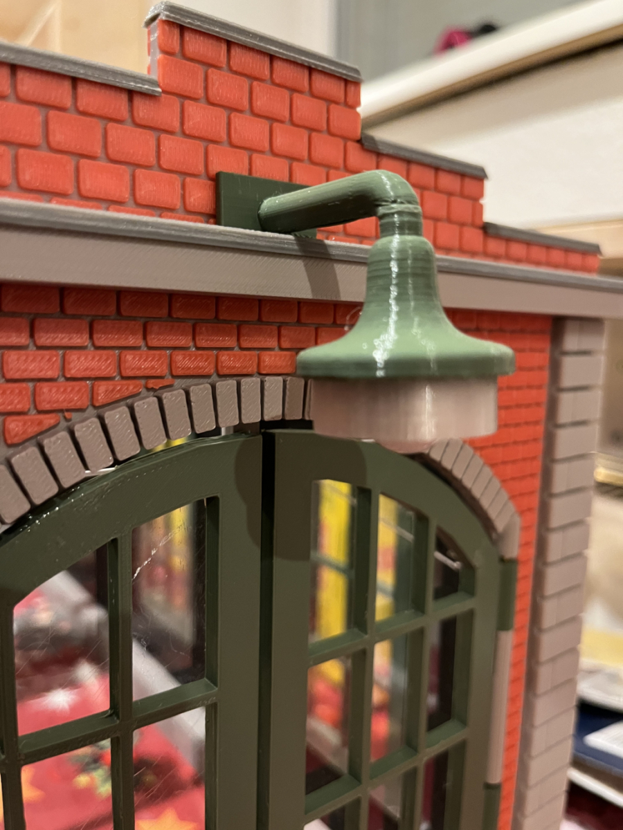 Eine kurze Idee von meinem Vater: Ich hätte ja gerne einen Lokschuppen – oder zwei. Der Eine soll etwa 70cm lang sein, damit das Krokodil da rein passt. Und der Andere etwas kleiner, für die Dampflok. Die Türen soll man auf und zu machen können. Am besten automatisch. Beleuchtung versteht sich natürlich von selbst. Ein Ziegelbau mit Blechdach wäre super, mit großen Fenstern. Und die grüne Farbe, die auch schon für andere Dinge verwendet wurde, soll mit drin sein. Man könnte ja alles in grau drucken und dann lackieren.